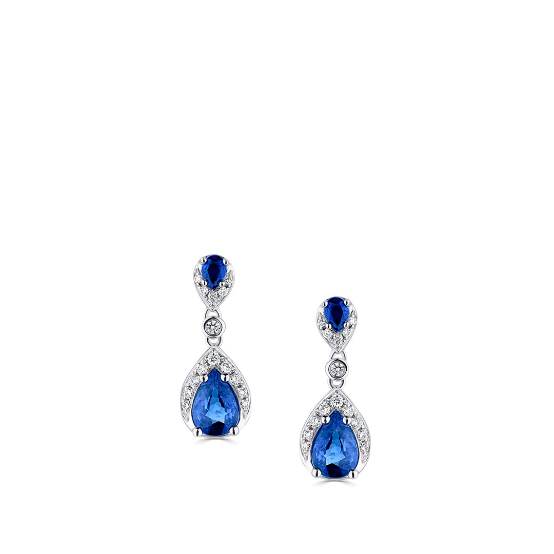 18ct White Gold Blue Sapphire and Diamonds Eternal Serenade Teardrop Earrings
